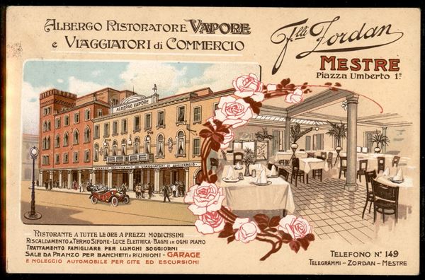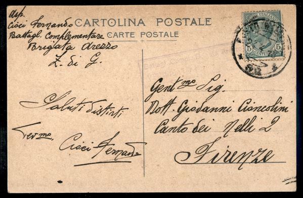 Albergo Vapore/Zordan Mestre - cartolina dalla Posta Militare (Battagl. Compl. Brigata Arezzo) per Firenze del 24.4.1918