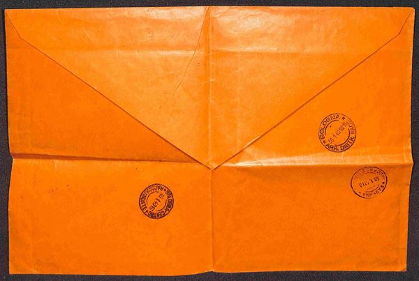 Annullo muto ovale a sbarre con data 29.1.1940 con a lato lineare su due righe Sant'Agata sul Santerno su raccomandata con 20 cent + coppia 50 cent Imperiale per Bologna