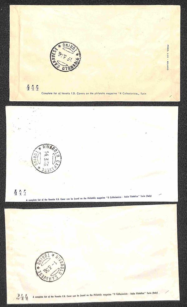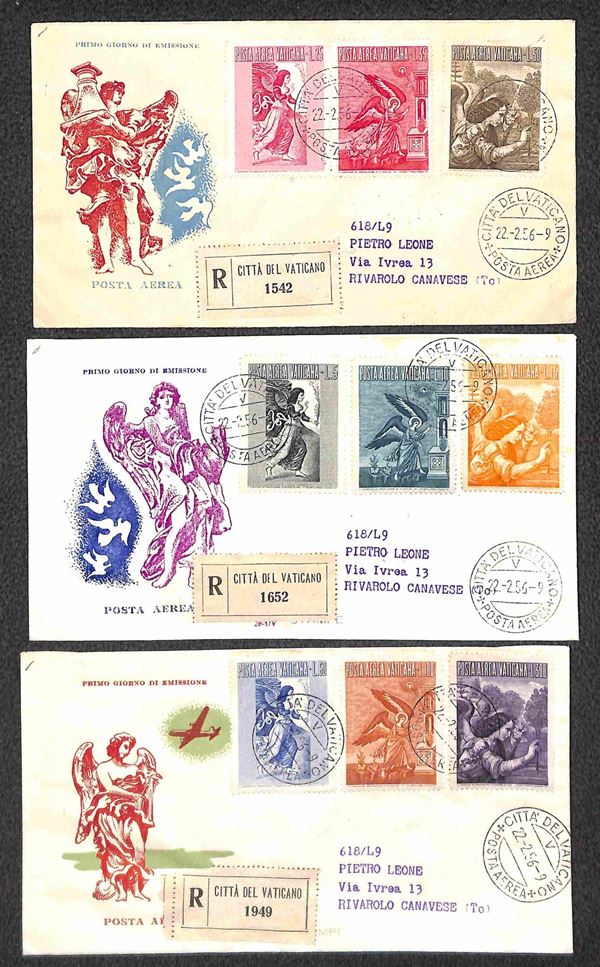 Arcangelo Gabriele serie completa (Aerea 24/32) su tre buste FDC raccomandate con bollo d'arrivo