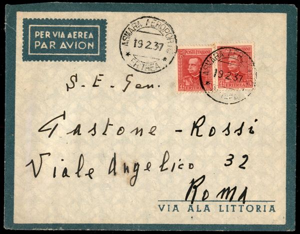Asmara Aeroporto 19.2.37 (P.ti 8) - aerogramma per Roma