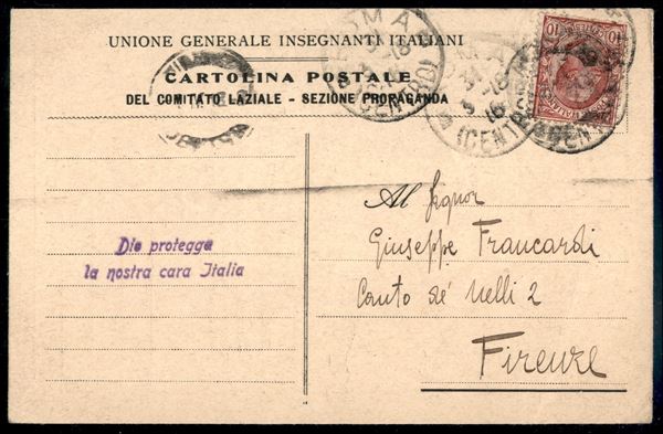 Austriaci Tedeschi Bulgari e Turchi... - Unione Generale Insegnanti/Comitato Laziale/Sezione Propaganda - cartolina da Roma a Firenze del 31.3.1918