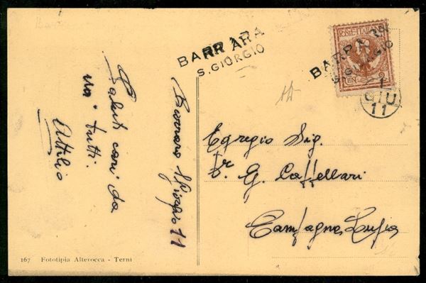 Barrara S.Giorgio + muto a data - 2 cent Floreale (69) su cartolina per Campagna Lupia del 1.6.11 - Diena