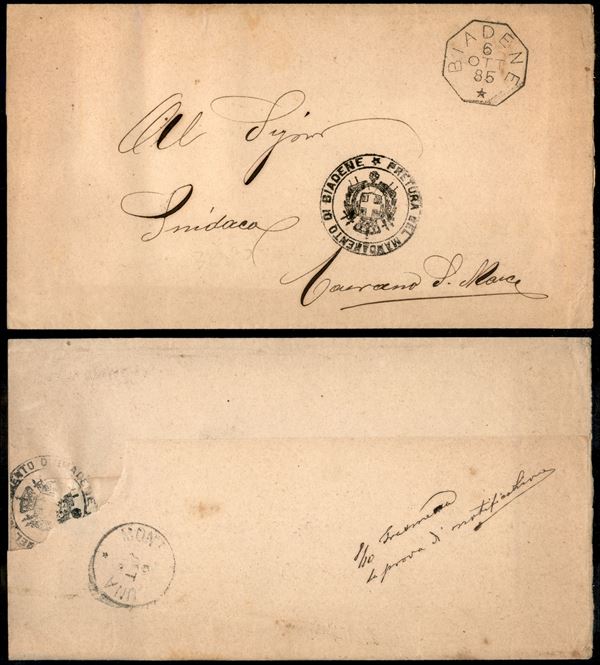 Biadene - piego in franchigia per Montebelluna del 6.10.85
