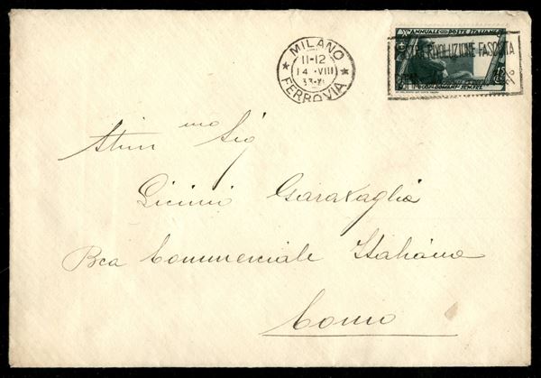 Busta con Decennale 15 cent (327) isolato da Milano 14.VIII.33 a Como