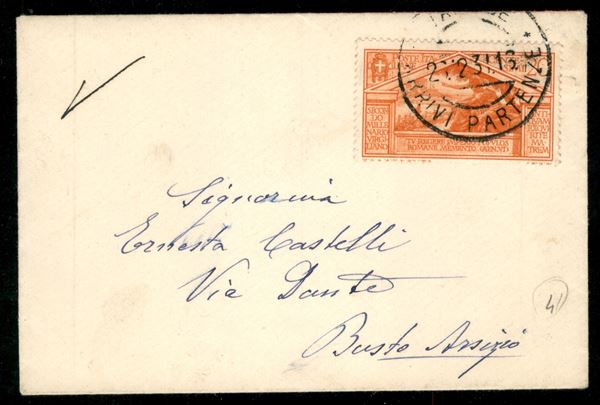 Bustina con 20 cent Virgilio (283) da Varese 21.2.31 a Busto Arsizio
