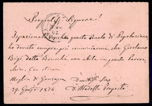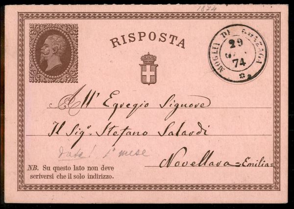 Cartolina Postale 15 cent risposta da Moglia di Gonzaga 29 gen. 74 per Novellara - primo mese d'uso (C2 parte risposta)