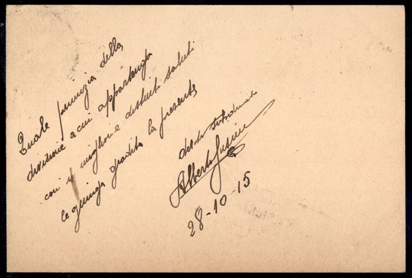 Comando della 16 Divisione/Brigata Cremona/Brigata Friuli/Campagna 1915 - cartolina per Firenze del 27.10.1915 - "Quale primizia della divisione..."