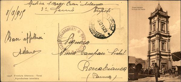 Comando Telegrafisti / Tripolitania - tripoli 8.12.15 - cartolina in franchigia per Roccabianca