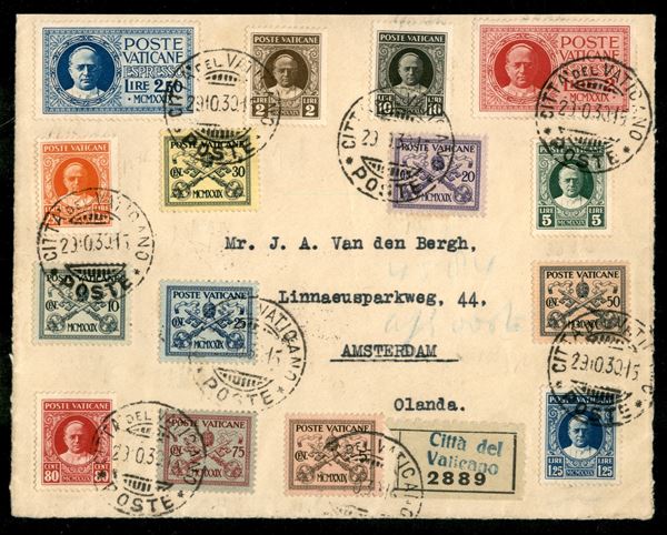Conciliazione serie completa + espressi (1/13 + Espressi 1/2) su frontespizio di lettera per l'Olanda