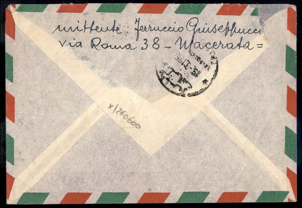 Coppia 60 lire Turistica (732) su lettera via aerea da Macerata per Tripoli del 16.3.54