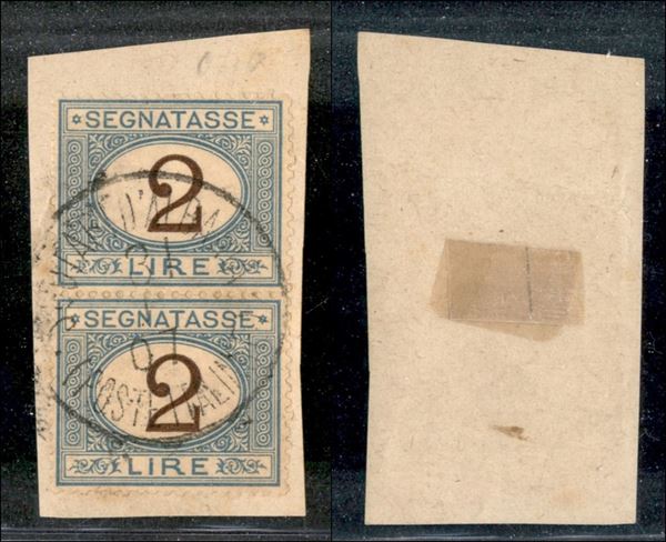 Coppia del 2 lire Segnatasse (12 - Regno) usata su frammento 31.1.07