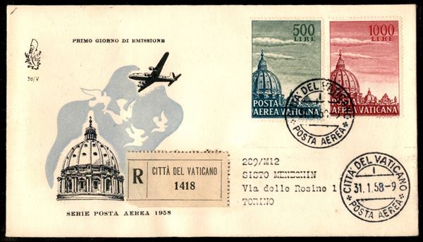 Cupoloni seconda emissione serie completa (Aerea 33/34) su FDC raccomandata con bollo d'arrivo