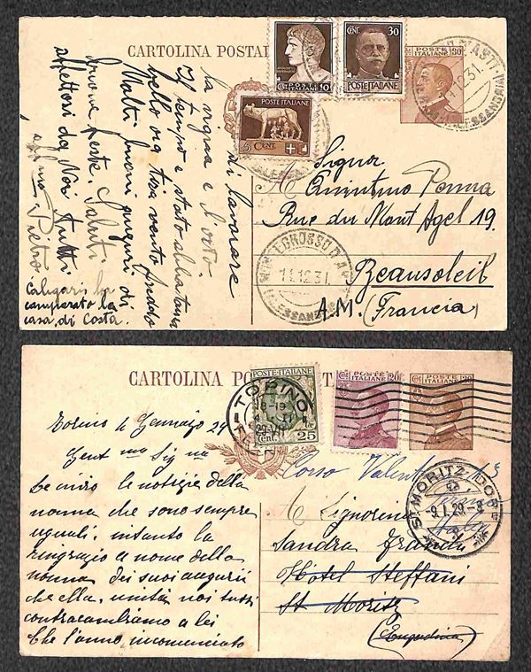 Due Cartoline Postali Michetti 30 cent con affrancature complementari per l'estero (C61 e C68)