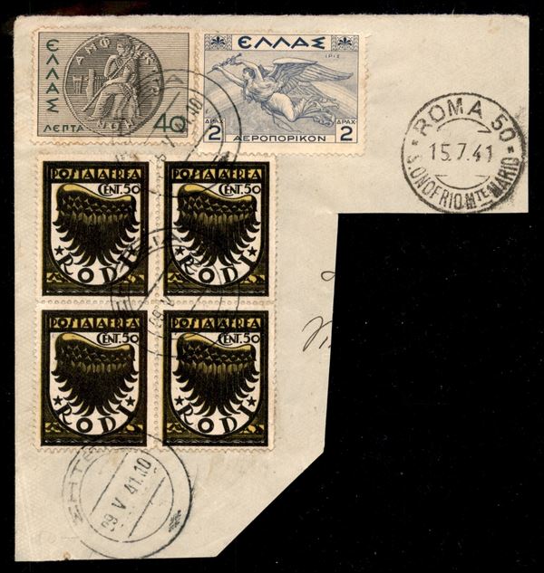 Egeo (30 - Aerea) + Grecia - frammento di busta per Roma del 29.5.41