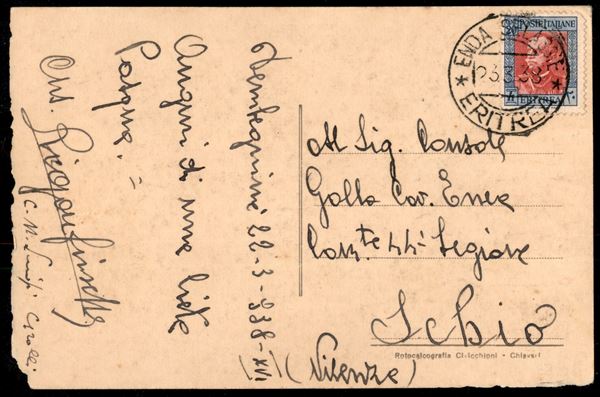 Enda Selassie - 20 cent (196) su cartolina per Schio del 23.3.38