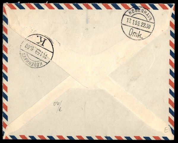 Espresso del 19.1.59 per la Danimarca con 60 lire Lourdes + 100 lire Campidoglio - fresca