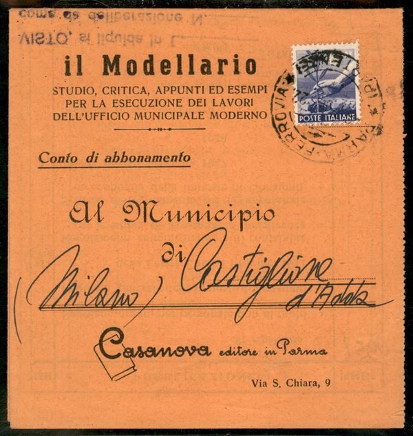 Estratto conto giornale con Democratica 6 lire da Parma a Castiglione d'Adda
