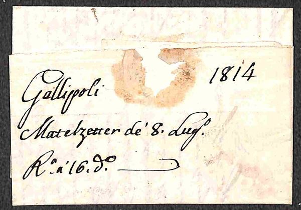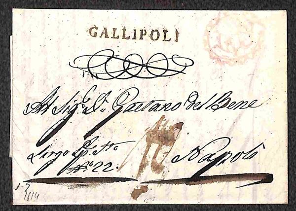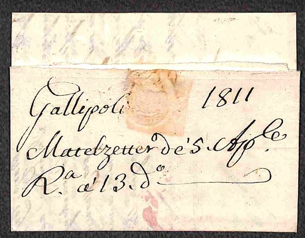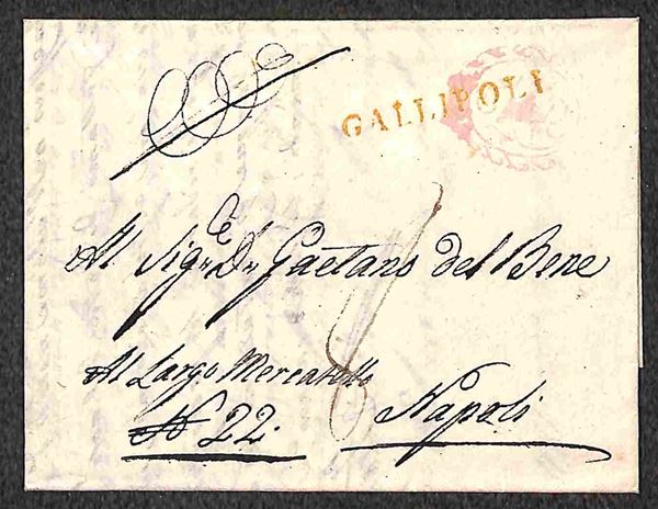 Gallipoli - due lettere per Napoli del 1811 (rosso) e 1814 - tassate