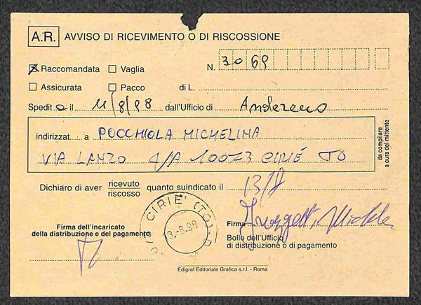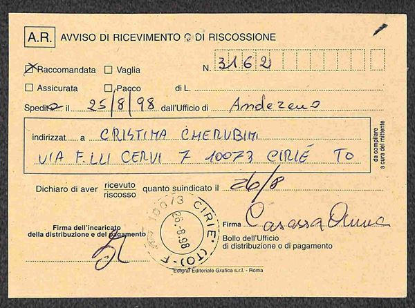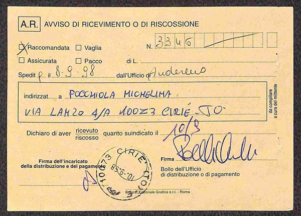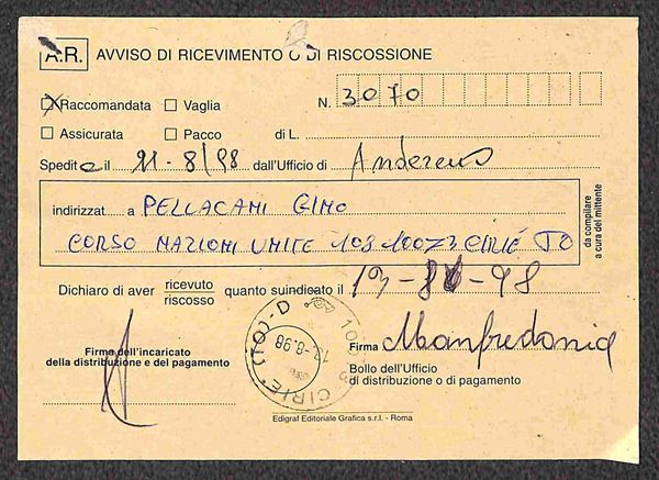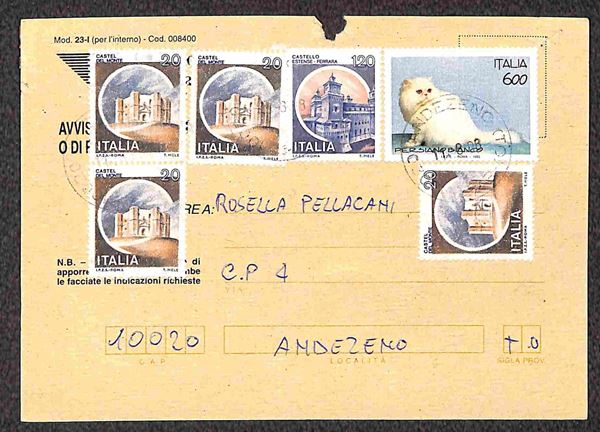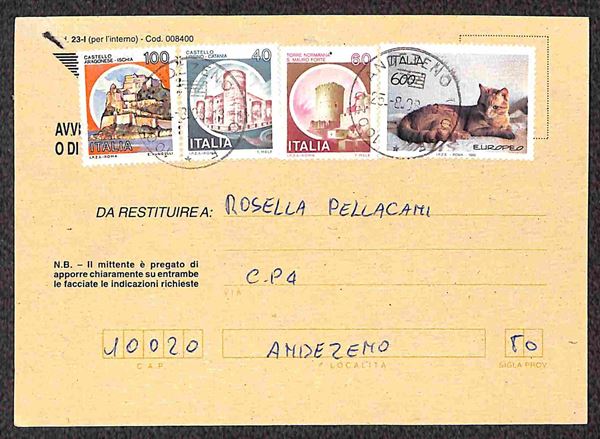 Gatti (2051/54) - i quattro valori + complementari su altrettante ricevute di ritorno
