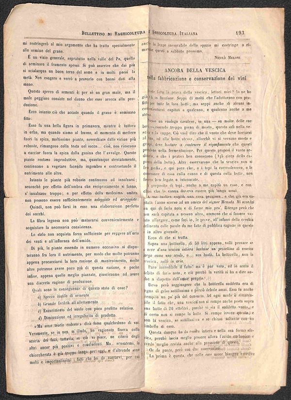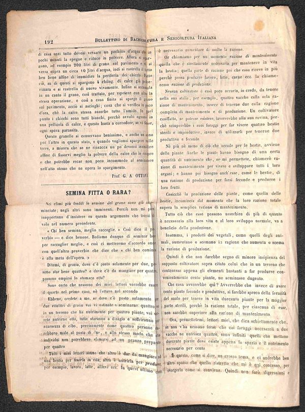 Giornale "Bollettino della bachicolutira e sericoltura italiana" del 28 sett. 1867 affrancato con 1 cent (14) annullato con numerale a punti 51 da Casale Monferrato