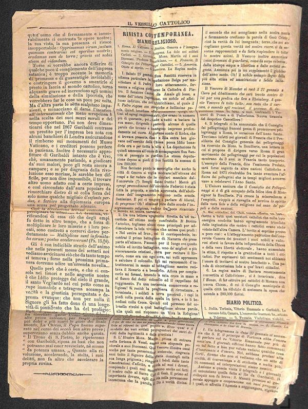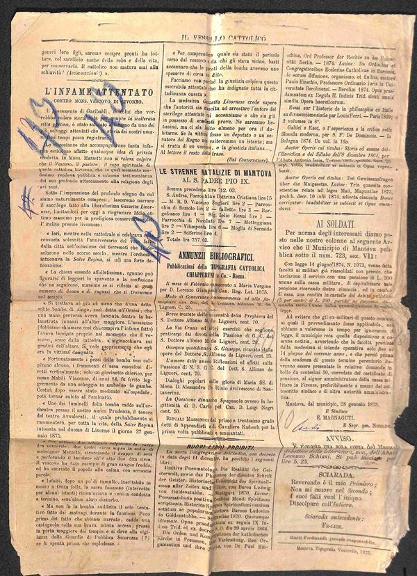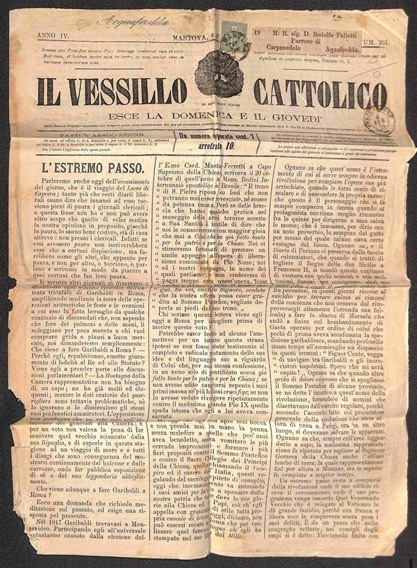 Giornale "Il Vessillo Cattolico" affrancato con 1 cent (14) da Mantova 4 feb. 75 in arrivo bollo C! di Carpenedolo