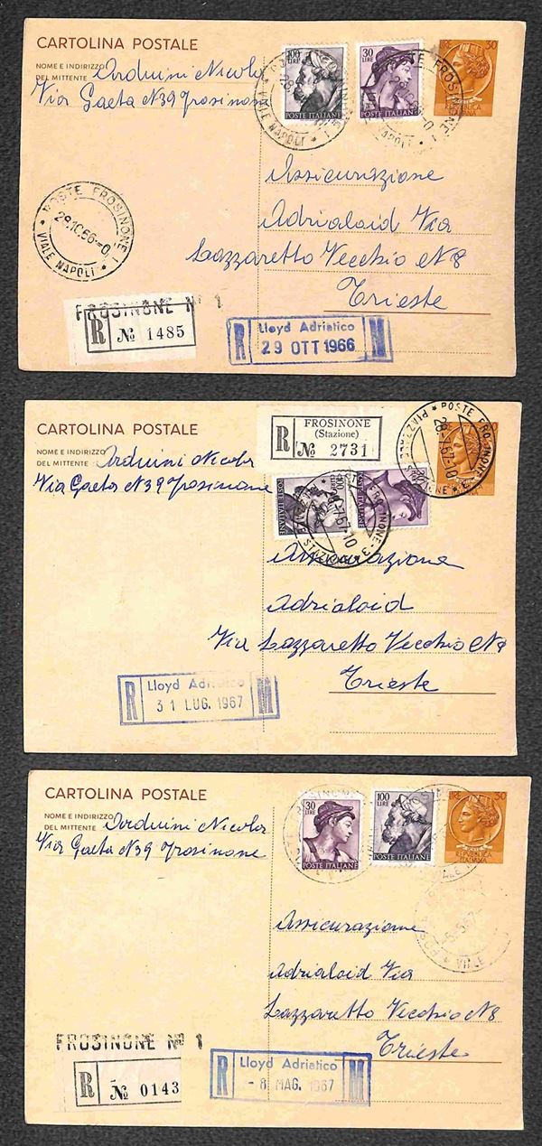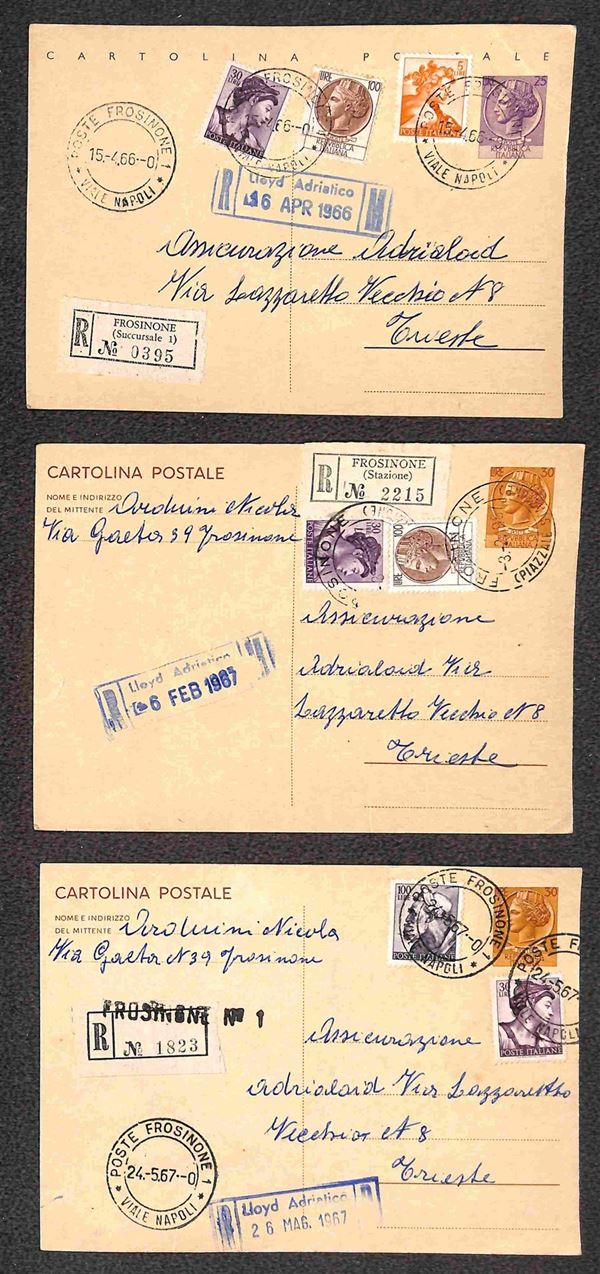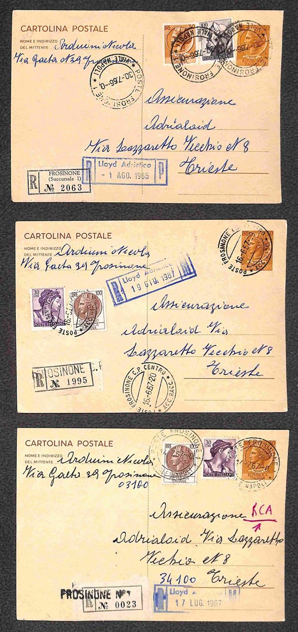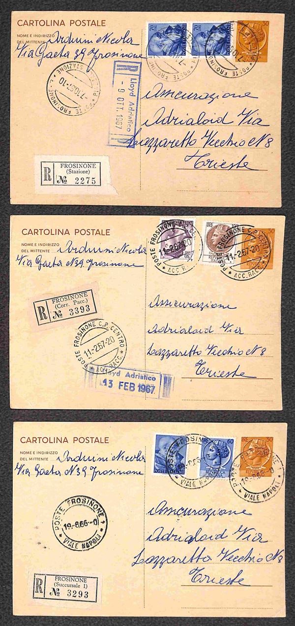 Insieme di dodici Cartoline Postali Siracusana - undici da 30 lire e una da 25 lire (C163 + C167) tutte raccomandate con affrancature complementari - alcune ripetute