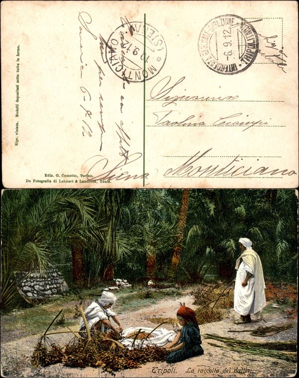 Intendenza Generale Direzione Tripolitania 6.9.12 - cartolina in franchigia per Monticiano