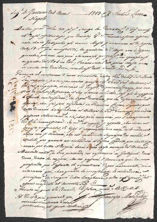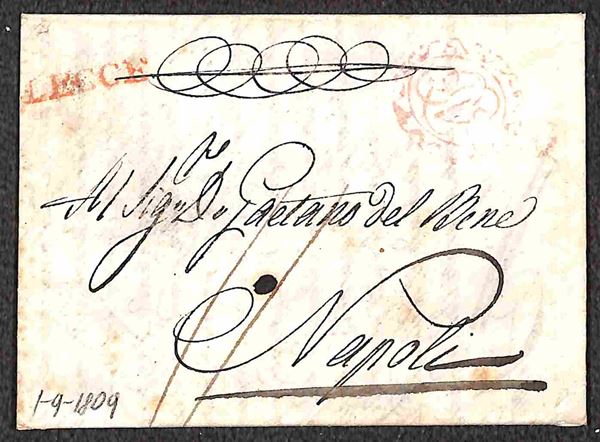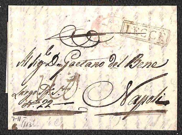 Lecce - due lettere per Napoli del 1809 (rosso) e 1813 - tassate