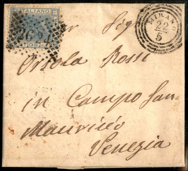 Lettera con bollo austriaco Mirano 22/5 tipo C4 affrancata con 20 cent (26) annullato con numerale a punti 2624