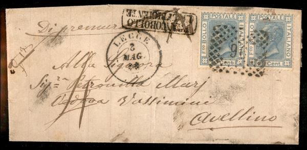 Lettera da Lecce del 3 mag. 68 con coppia 20 cent (26) tassata bollo in cartella Francobollo Insufficiente e segni di tassa - detassata poi a tratti di penna
