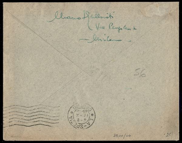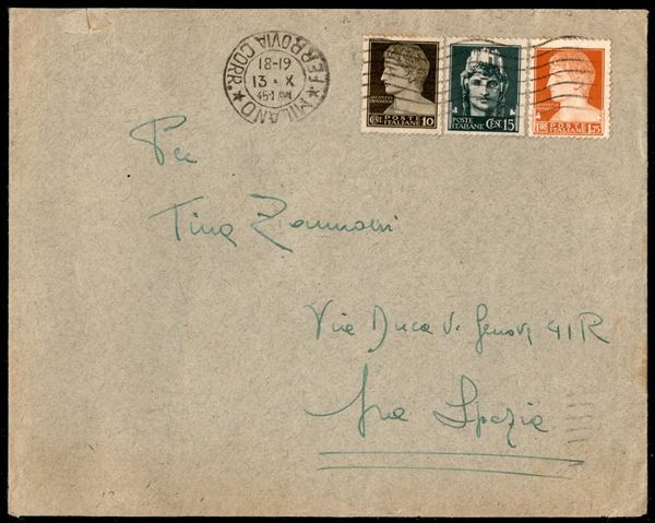 Lettera da Milano del 13.X.45 per La Spezia affrancata con Imperiale 1,75 lire arancio + 15 cent verde scuro + 10 cent bruno (254 + 245/46) - combinazione non comune
