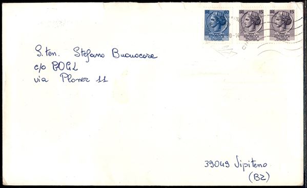 Lettera in tariffa ridotta a militare affrancata con 60 lire + coppia 15 lire Turrita (1071 + 1078) - da Torino per Vipiteno del 2.9.80