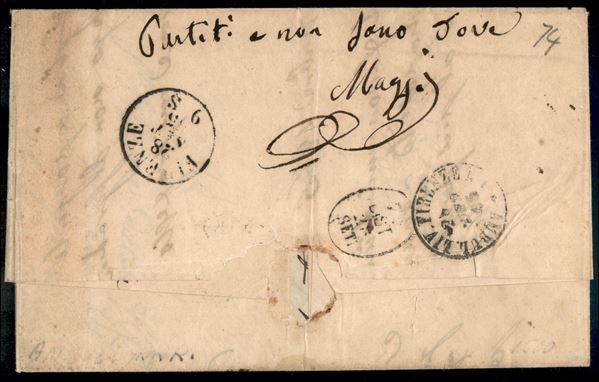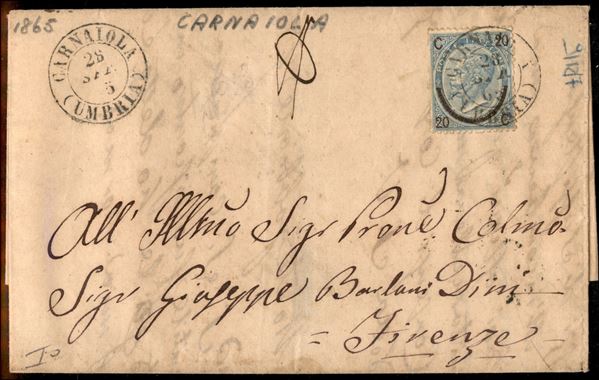 Lettera per Firenze con 20 cent su 15 (23) annullato a bollo sardo-italiano Carnaiola (Umbria) 28 set. 65