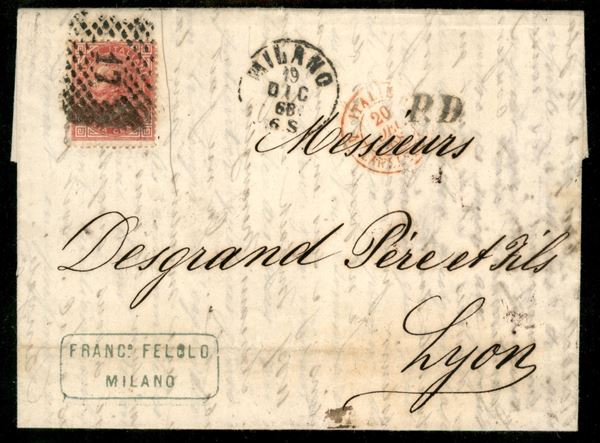 Lettera per la Francia con 40 cent (T20) con numerale 17 da Milano 19 dic. 68 per Lione