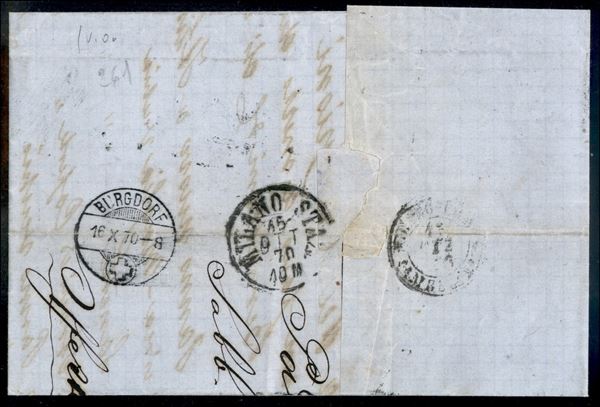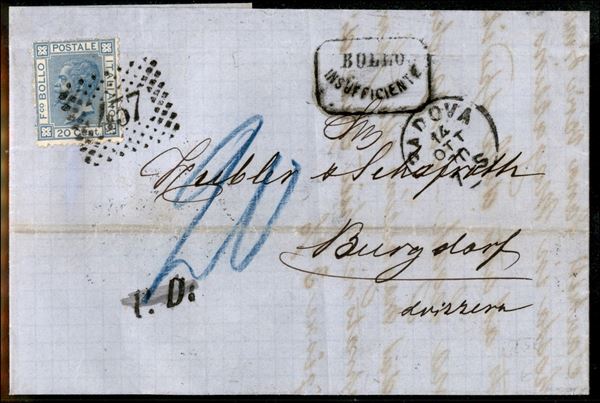 Lettera per la Svizzera da Padova del 14 ott. 70 con 20 cent (26) - timbro in cartella Bollo Insufficiente e segno di tassa in azzurro