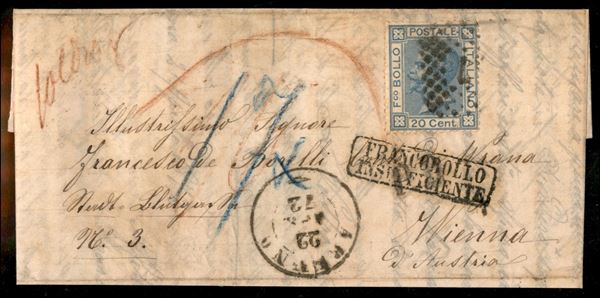 Lettera per Vienna da Arluno del 22 apr. 72 affrancata in origine con due francobolli di cui uno caduto - con bollo in cartella Francobollo Insufficiente e segni di tassa