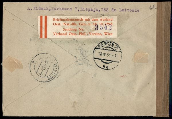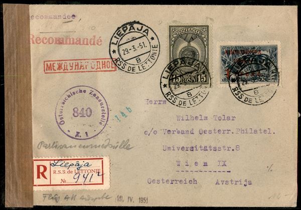 Lettonia - Raccomandata da Liepaja a Vienna del 29.3.51