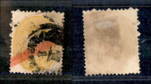 Levante - 1863 - 2 soldi (36L) con grande tratto diagonale in rosso e successivo annullo (molto inchiostrato) di Varna (250)