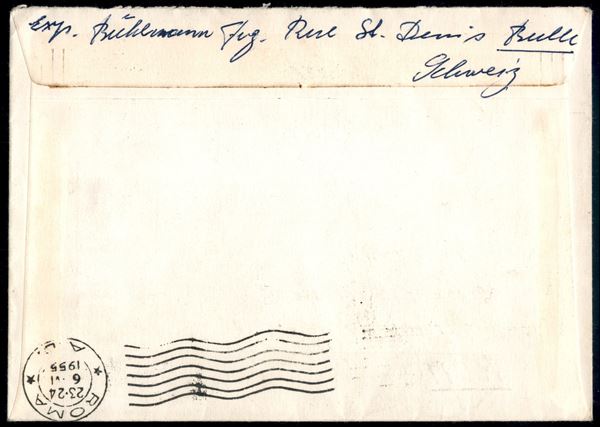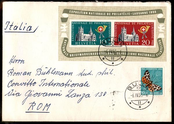 Losanna 1955 (15 - Foglietti) + complementare (603) - busta da Bulle a Roma del 6.4.55