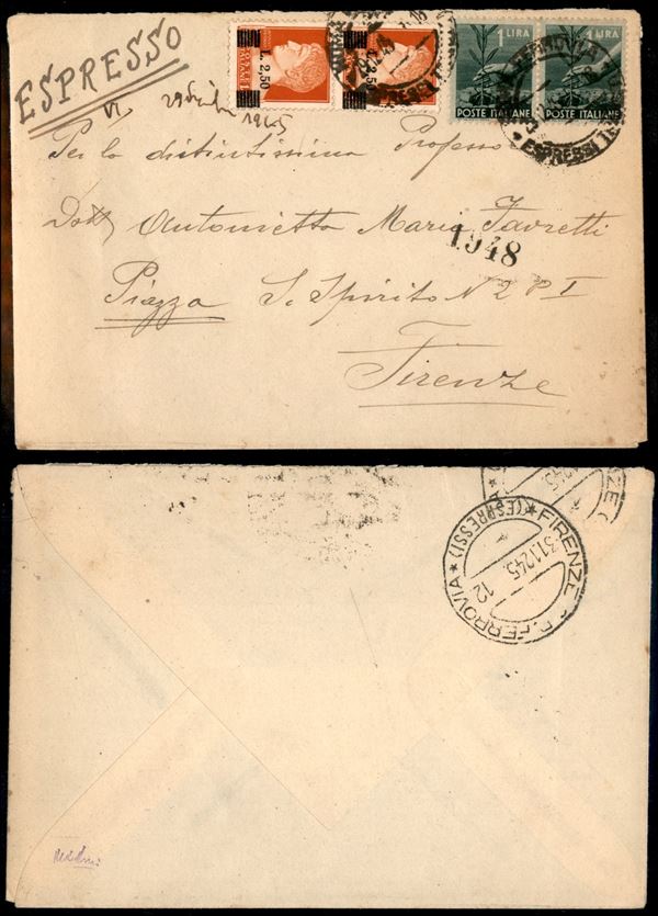 Luogotenenza (523 coppia) + Democratica (550 coppia) - espresso per cittą - Firenze 29.12.45