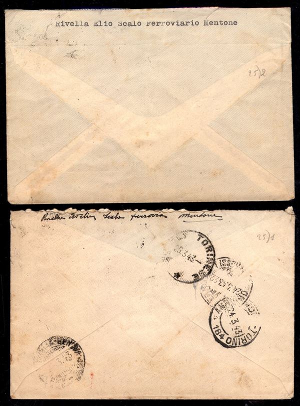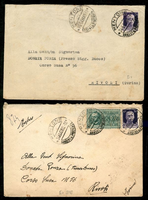 Mentone - due lettere del marzo 1943 con 50 cent Imperiale - una espresso con annulli di Mentone