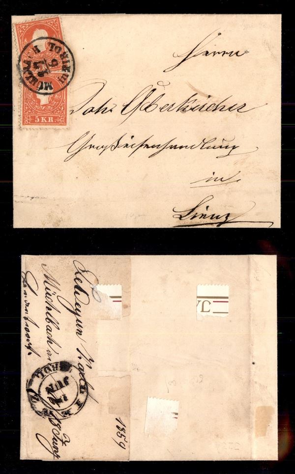 Muhlbach in Tirol (P.ti 4) - due 5 kreuzer (8) su lettera per Lenz del 27.6.59