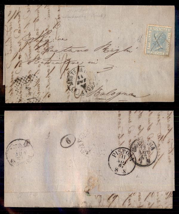 Numerale a punti di Montecatini (Nievole) su lettera per Bologna del 11.11.67 affrancata con 20 cent (26-Regno) annullato a penna - Diena