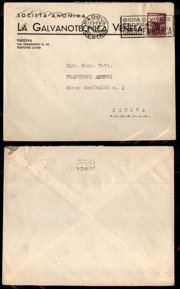 Padova 5 ottobre 194 - 20 lire Democratica (561) su busta per cittą