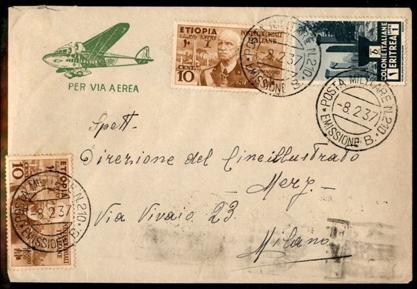 Posta Militare n. 210/Emissione B - due 10 cent (1) + complementare (209 - Eritrea) su aerogramma per Milano del 8.2.37