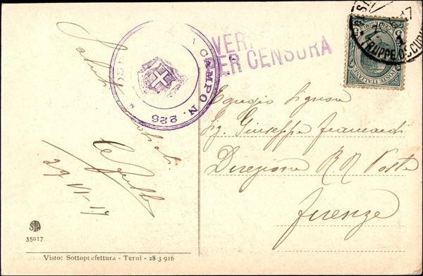 Posta Militare/Truppe Occupazione 1 - bella cartolina (Valona - Venditori di Tabacco) per Firenze dal Campo N. 226 (in viola) del 30.6.1917