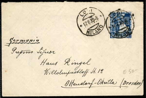 Proclamazione dell'Impero 1,25 lire (445) su lettera da Lodi 17.8.39 per Dresda