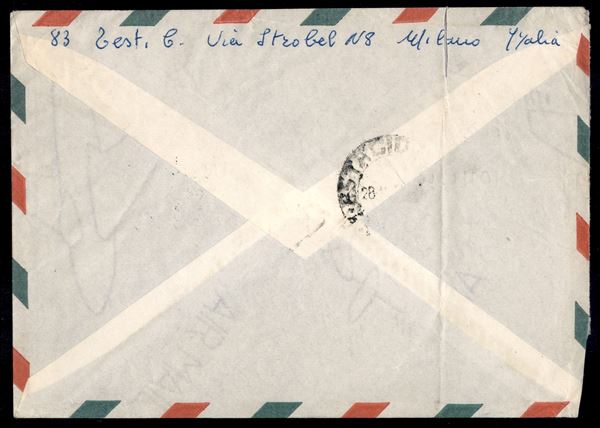 Quartina 70 lire Giochi del Mediterraneo (970) su aerogramma da Milano a Rio de Janeiro del 17.12.63