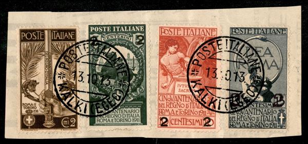 Quattro valori di Regno (92 + 99/101) usati a Kalki il 13.10.13 su frammento di giornale