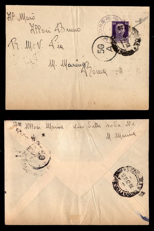 R. Motonave Teresa Madre - 50 cent (251) su busta per Roma del 17.12.42 - Sorani